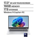 HP OmniBook X Copilot+ PC Laptop: 17.3" 2K Touch, Ultra 7 256V, 16GB, 1TB $699.99